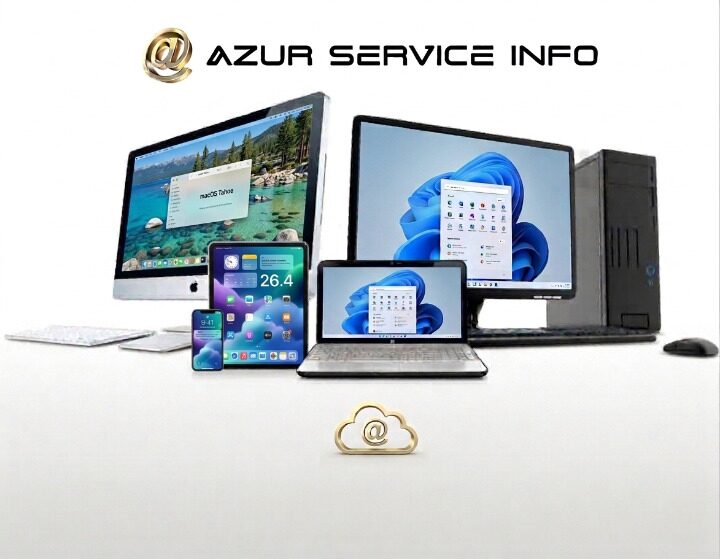 AZURSERVICEINFO à la solution pour toutes réparations informatiques et tous problème informatique. Réparation d'ordinateur. Dépannage à domicile. Récupération de données. Aide informatique. Sauvegarde des données. Cours d informatique. Et aussi nous somme là pour tous problèmes de : Box internet. Anti-virus. Pannes...